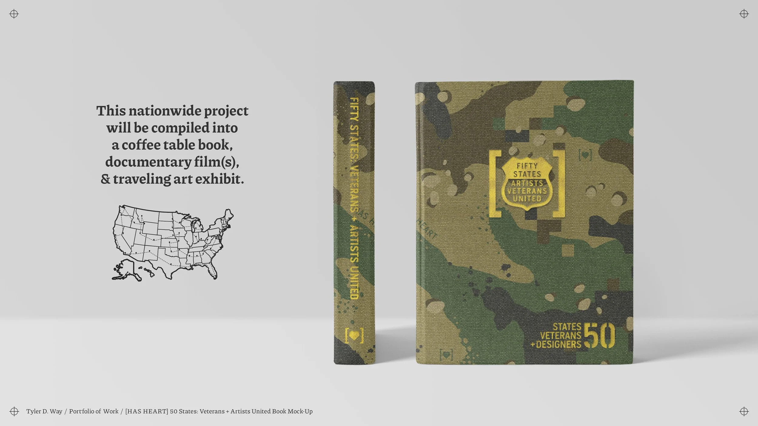 With 39/50 state projects completed and one art museum exhibit already installed, the ultimate goal of the national tour included compiling every project, design, and veteran story into a coffee table book, a documentary film, and a traveling art exhibit.
